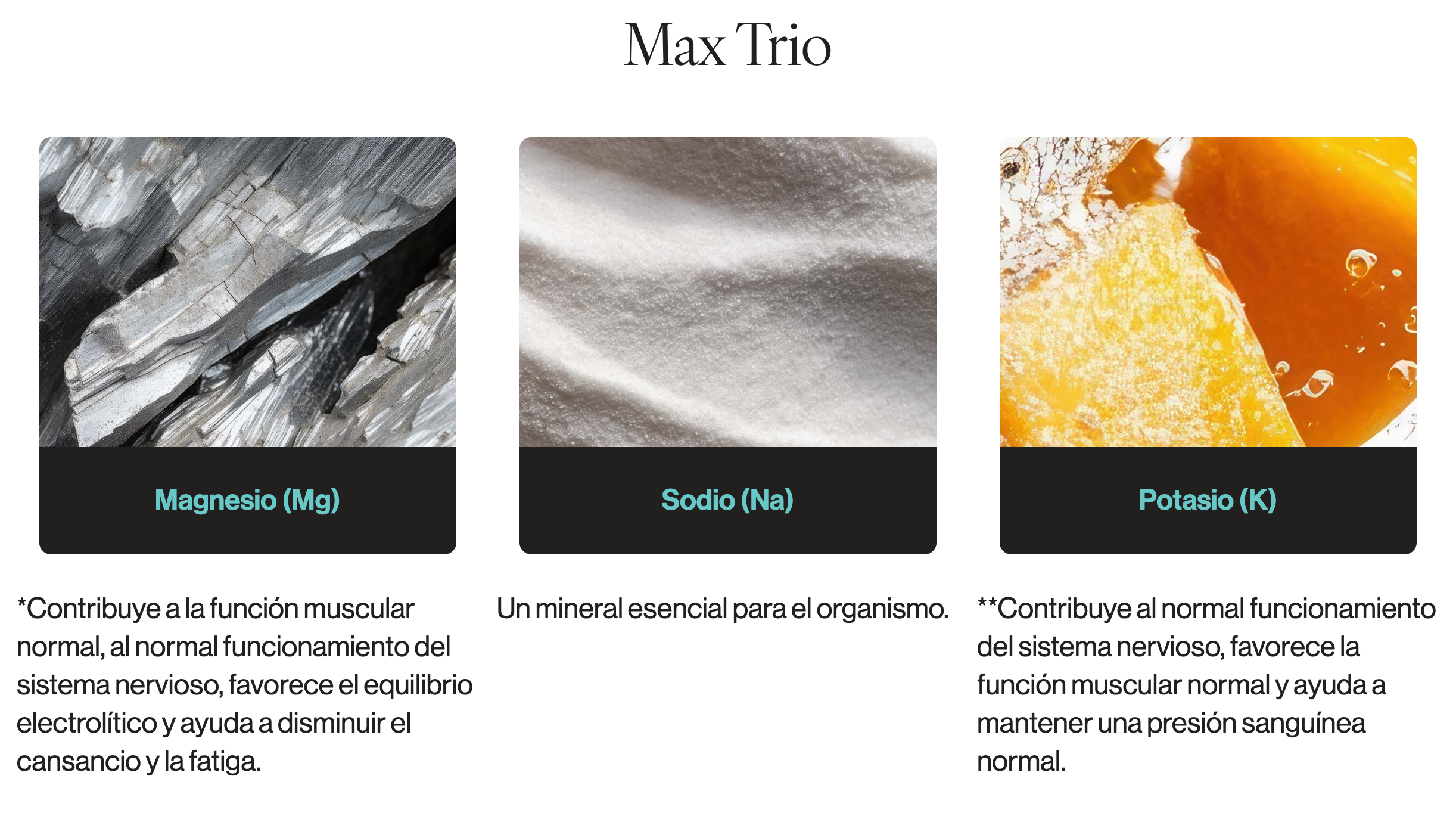 Citrato de sodio, corrector de acidez (ácido cítrico), citrato de potasio, cloruro de magnesio, aroma natural, corrector de acidez (ácido málico), edulcorante (glucósidos de esteviol procedentes de estevia), aroma natural.